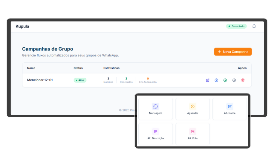 Crie, edite e gerencie campanhas de WhatsApp para grupos com apenas alguns cliques