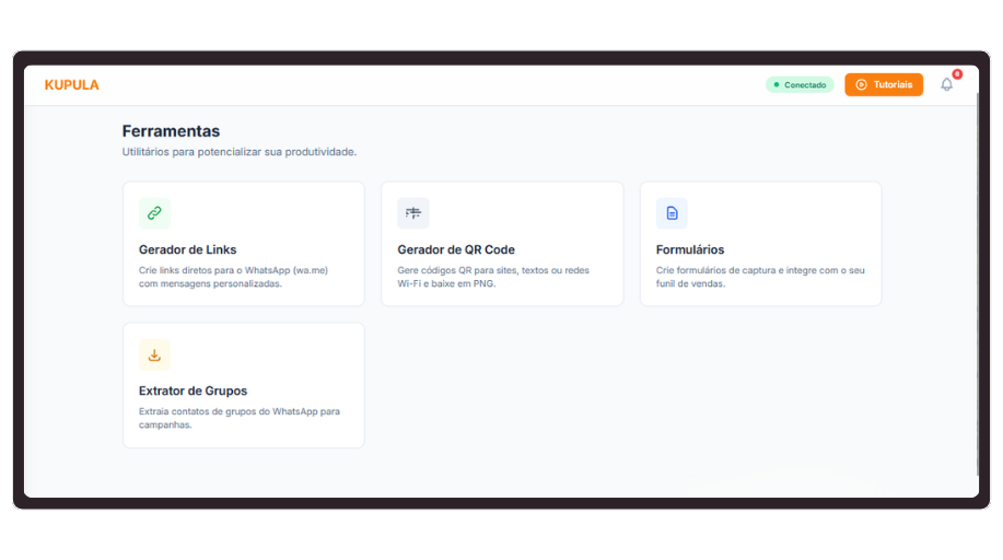 Gere links de whatsapp, QR Codes, formulários e extraia contatos de grupos, tudo em um só lugar