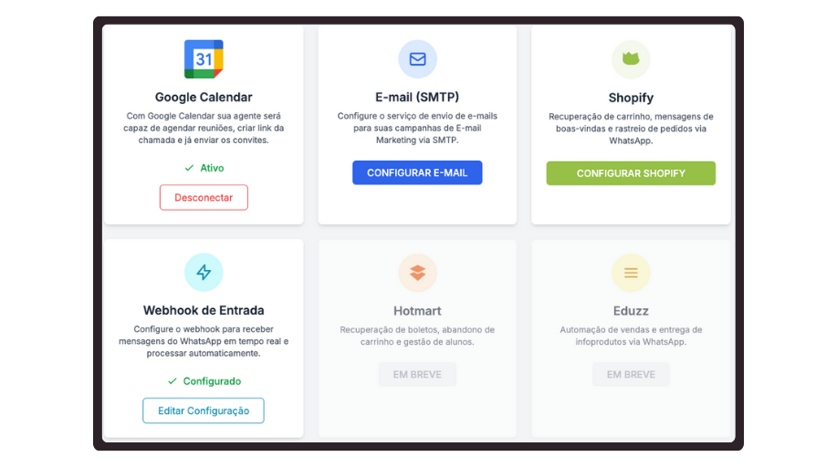 Integre Google Calendar, E-mail, WhatsApp e outras ferramentas para turbinar sua operação com automações inteligentes