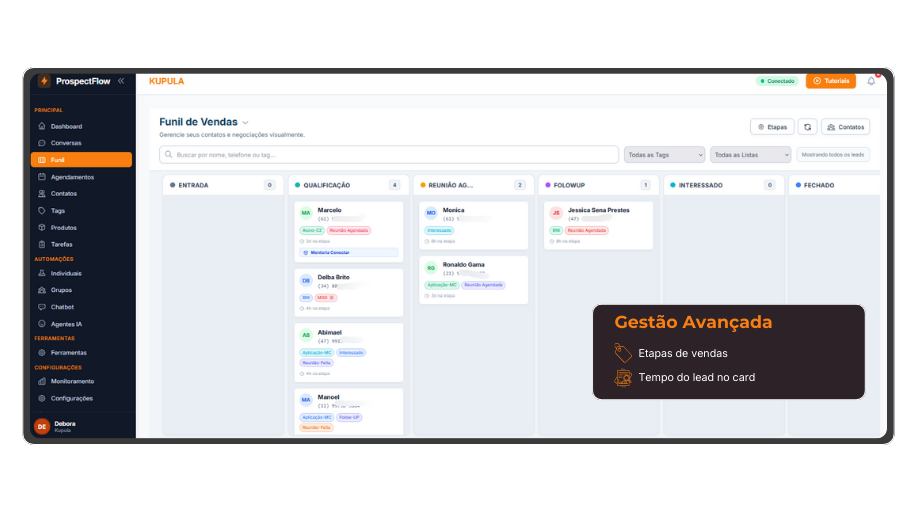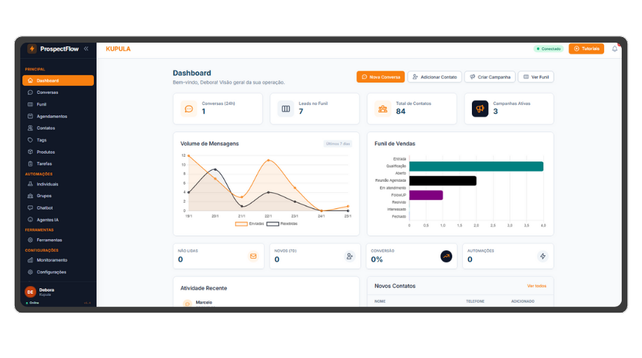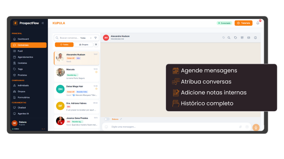 Com o ProspectFlow, você organiza conversas, prioriza clientes e acompanha vendas em tempo real. TUDO em um único sistema.